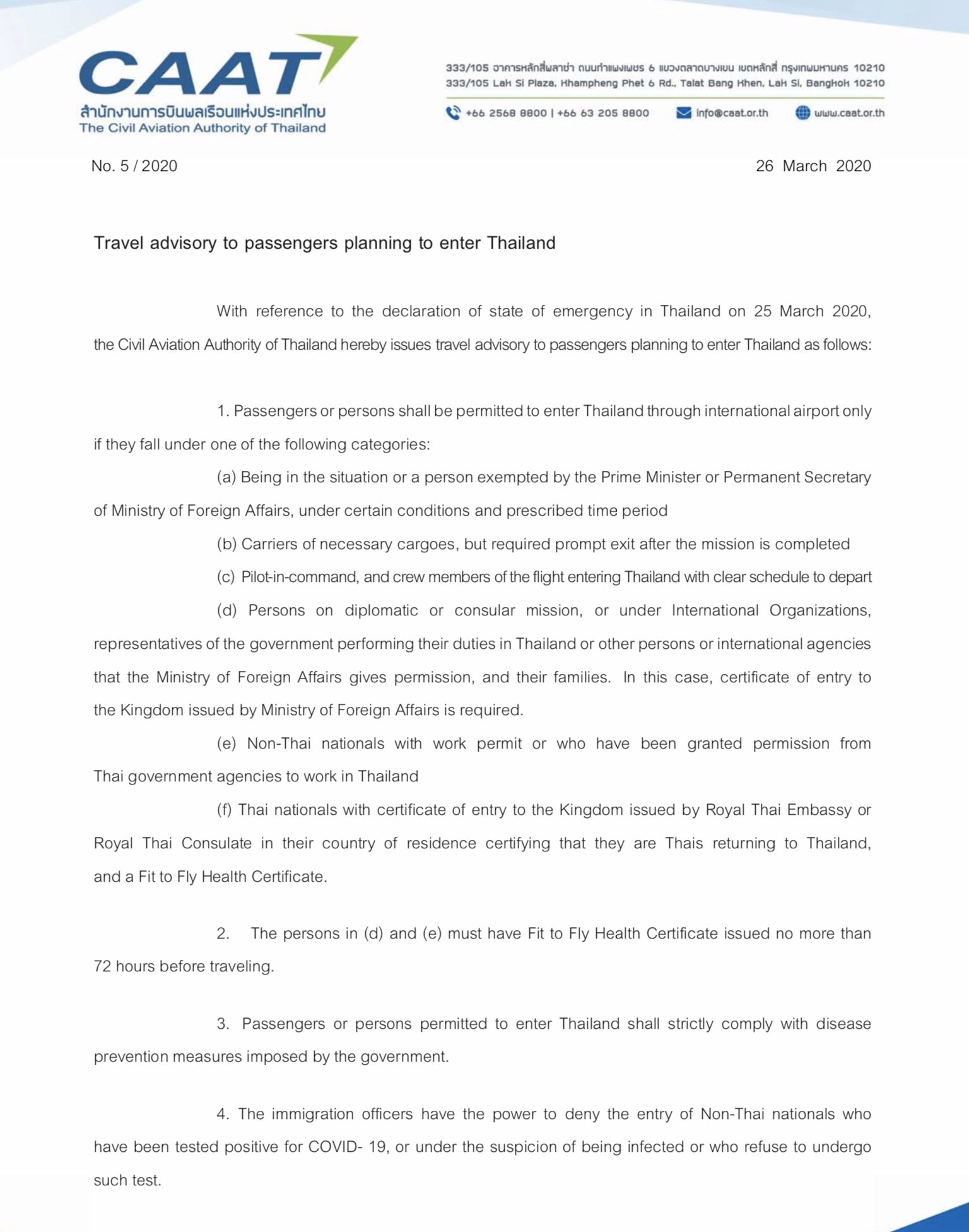 Travel Advisory To Passengers Planning To Enter Thailand Royal Thai Embassy Canberra